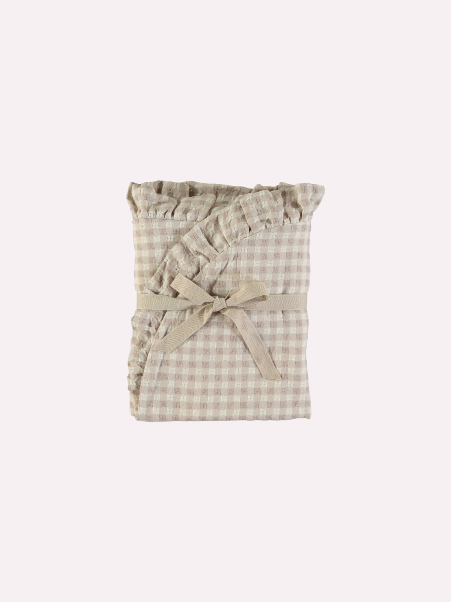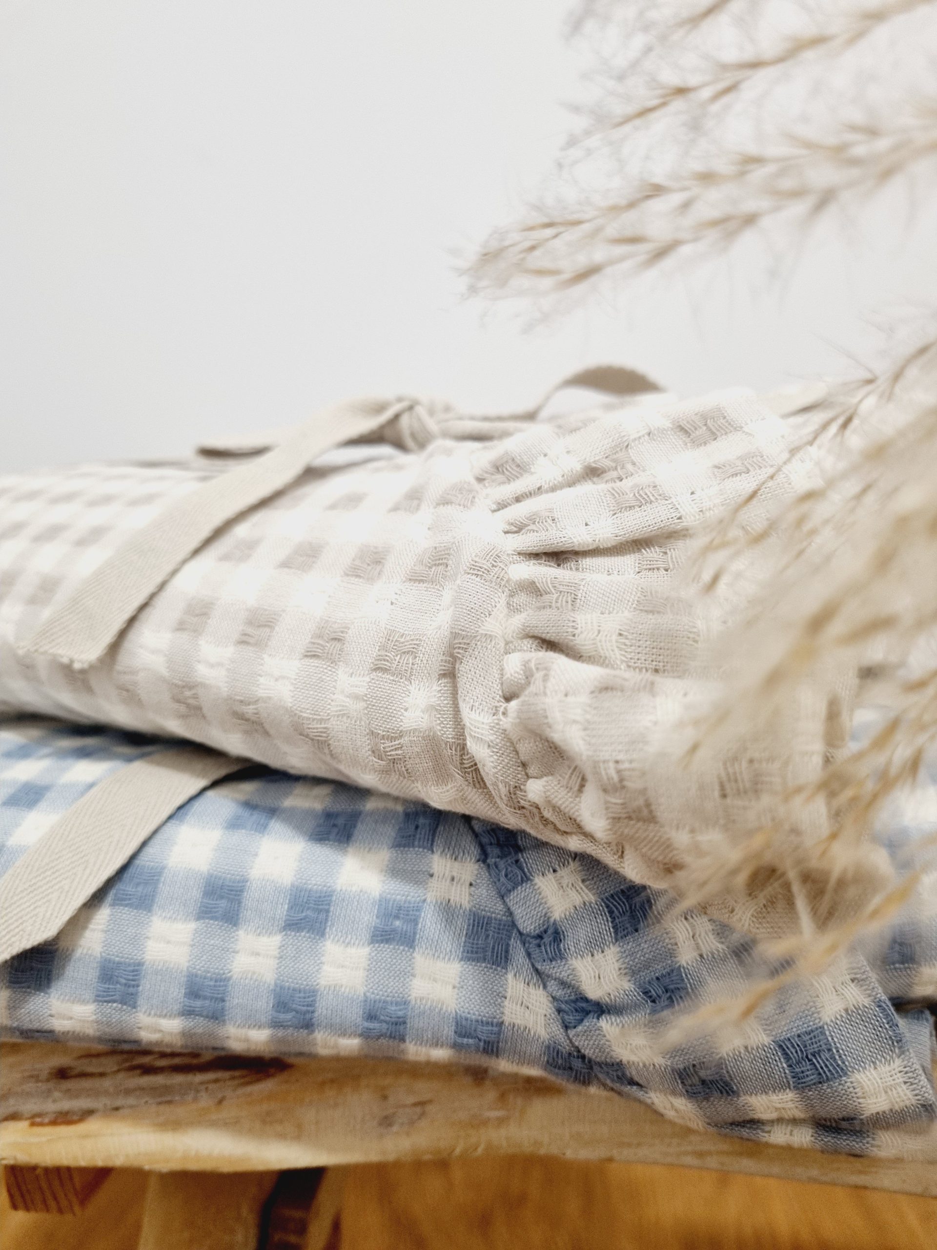 Arrullo con un diseño bohemio y delicado, con interior de rizo fino muy suave y exterior en vichy. Una prenda muy dulce ideal para arropar al bebé en brazos o en el carrito. Mide 80 x 80 cm y está fabricada con algodón orgánico GOTS 100%.