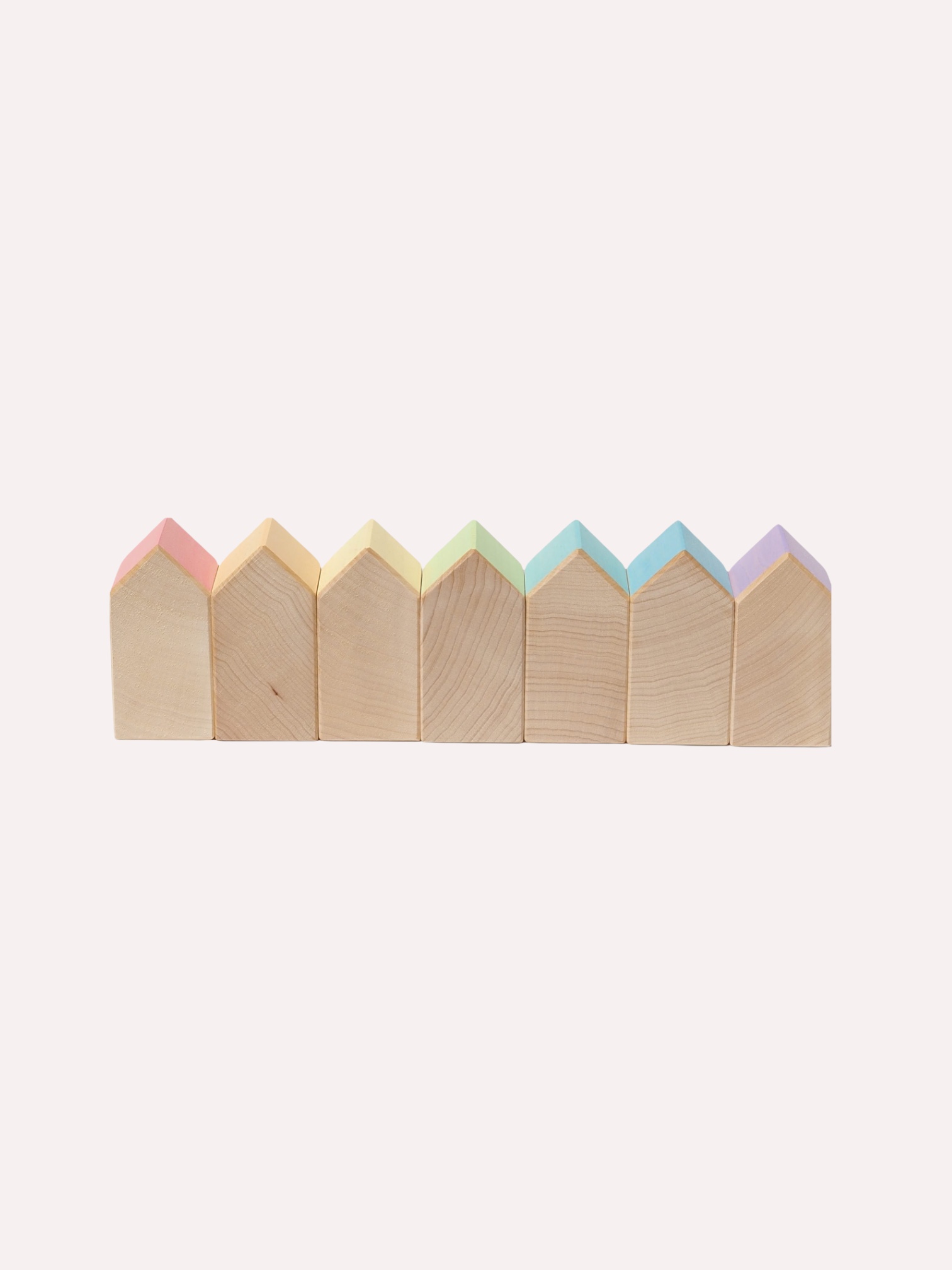 Estas 7 casitas de madera son perfectas para formar parte de los mundos imaginarios de los niños y niñas, pero no sólo son casitas, también pueden ser un juego de equilibrio y construcción, podrán apilarlas y crear nuevas estructuras.